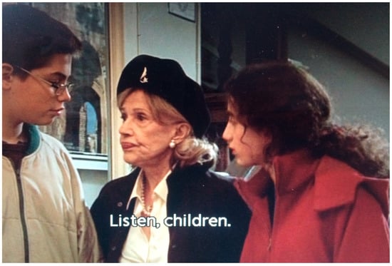 How are we to understand this scene of transmission? What is being passed on? It is the first time Rivka acknowledges to her grandchildren that she is Jewish, doing so in a place symbolizing the survival of Jewish life in France and in view of an Israeli tourist poster hanging conspicuously in the background. Yet, this locus of Jewish survival is a place that seems to have no other place in her life—which is perhaps why she only first enters it with the children at a time when she herself is no longer fully among the living, nor quite yet among the dead.