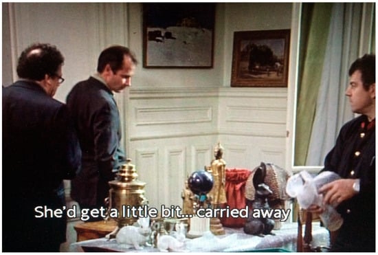 Elsewhere in her life, this grief seems to be stored in evocative objects that fill her apartment (see Figure 7). Yet, strangely enough, no one of them ever appears to stay in her possession for very long, as though the purpose of their incessant exchange were to express the passing of those she could not hold on to, to grieve with each exchange their ceaseless passing, to prolong with each new deal her endless grieving.4 Commenting on his mother’s behavior, Clément observes in his memoir, “Toujours acheter, vendre, marchander. Plus pour le geste que le résultat” [‘To always be buying, selling, bargaining. More for the gesture than the result’] ().