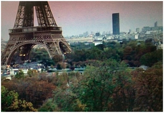 Fleeing from this final encounter with the reparations people and all that it seems inadvertently to touch on, Victor walks down a long hallway, the film’s last spoken word traces no doubt lingering in his ear. He comes to a halt finally before another open window, where he is left once again to catch his breath, his gaze seemingly fixed on the base of the Eiffel Tower (see Figure 9).