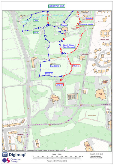 Two semi-structured Data-Gathering Walking Routes through the park.