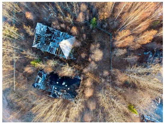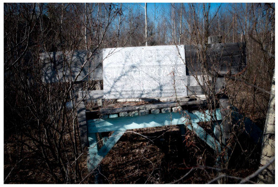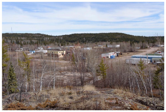 Near the corner of Nuclear Avenue and Road 962, one can see signs of the early-1980s abandonment of this mining community (Figure 2). Streets constructed six decades ago are covered by layers of sand and silt; aspen and white birch grow through sidewalks; and street signs marking this unique intersection have long ago been scavenged by collectors. Empty lots, with old foundations exposed and crumbling, contrast with dilapidated buildings still standing from the period before 3 December 1981, when Eldorado Mines Corporation, owned by the Government of Canada, suddenly announced the closure of its mining operations and thus precipitated the town’s rapid emptying. Using a drone in early May 2017, we counted 336 homes, as well as two condo projects, an apartment block, and at least twenty-two commercial buildings, all abandoned. From its peak population of approximately 4000 in the mid-20th century, Uranium City is currently home to about fifty people, a mix of white settlers and people of the Woodland Cree, Dene, and Métis nations. During their everyday lives, these remaining residents experience the legacy of what Harold Innis termed “cyclonic development”. However, Innis, a Canadian political geographer who promoted northern development and played a key role in defining and understanding communities such as Uranium City before his death in 1952, did not address the reality of the abandonment that follows single resource exploitation. Nor did he consider the prospect of remediation—a complex, expensive, and contested process only beginning to be felt by the remaining citizens of this town (Canadian Press 2017, May 15). In addition, completely outside the scope of Innis’s work are truth and reconciliation, historically set forth by the Truth and Reconciliation Commission of Canada in its 2015 Summary, which offers an important way forward in revising human ecologies as well as the human relationship with other life forms needed to remediate town sites such as Uranium City.