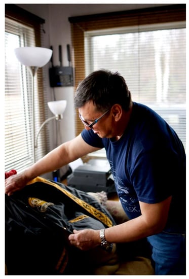Abandonment also entails going outside decision-making limits determined by consensus in a community or group and may constitute a breach of trust, one which can occur at any point in the conventional Western linear narrative (Boschman 2009, pp. 1–3). As we continue to interview people with ties to Uranium City, we often witness grief. Some of our contacts were born on Hospital Hill during the 1950s and 1960s because their parents had moved to Uranium City from places as far away as Ireland and Germany in order to work (McCaffery 2017; Melzer 2017), only to be forced to leave the place where they had grown up when others decided that mining was no longer viable. First Nations persons, such as Patrick Deranger, have a different story of loss. Patrick ran free in the woods as a very young Dene child before his family—in place on this land since time immemorial—was forcibly relocated and he was made to attend a residential school (Deranger 2017, Personal Communication). Abandonment, in the case of Patrick Deranger, occurred during the “boom” phase of Uranium City’s development. Although Deranger has not been back to Uranium City in over fifty years, his connection to this place is powerful. He asked us, before our departure, to locate the house in the forest where he had lived with his family. Prior to his family being relocated to this site, his grandparents had lived on the town site itself well before Uranium City was conceived, planned, and established just after World War Two (Deranger 2017). They occupied the land where the Uranium City Hotel would later be built (Figure 11) and were subsequently forced onto a nearby hillside along with other First Nations before being relocated again to Fort Chipewyan on the Alberta side of Lake Athabasca, where they found themselves living in a tent on the beach. As Deranger testifies, they became refugees, displaced from their own traditional home: “The Mikisew Cree saw us and took pity on us and brought us into their community”. To help us find his familial home, Patrick drew us a map, which turned out to be very precise as we foraged through mixed forest and rock. We photographed the site, left tobacco following First Nations protocols, and retrieved a piece of white birch bark, a pink rock, and a doorknob lying in the mossed-over remains of the door to the Deranger home to give to Patrick on our return.