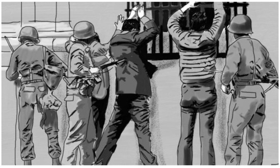 Structured as a personal narration through Goycoolea’s reflexive voiceover, ¡Viva Chile Mierda! (Figure 2) includes a series of highly significant interviews, such as an original conversation with former agent of Pinochet’s secret police Andrés Valenzuela. Valenzuela, who defected from the service in the early 1980s, provided vital information about the pernicious practices of the repressive apparatus, including details concerning missing detainees, to Chilean journalist Mónica González, who is also interviewed in the film. Goycoolea’s documentary features additional conversations between the director and his aunt Gaby, who, not long after the coup of 1973, was held prisoner along with her husband in a torture center in Santiago, where they were guarded by Valenzuela, their former neighbor. In the film, Goycoolea also talks with his cousins in their home in Spain, who revisit together their traumatic memories of being raided by soldiers in their Santiago home, witnessing their parents’ being taken away, and then being forced into a life in exile. Goycoolea’s film explores the reconciliation of his aunt and uncle with Valenzuela. ¡Viva Chile Mierda! has screened internationally, including New York, Santiago, Geneva, Rijeka, Glasgow, Madrid, Barcelona, and Brighton. It was listed as one of the ten best Chilean films of 2014 by Twitchfilm.com.