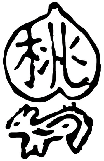 A Song Yuan Huaya with a peach inscribed with a Chinese character “Tao 桃 (Peach)” on the back of a hare. The period of the Song and Yuan Dynasties. Sketched by author. Picture source: Shi (1995), p. 58.