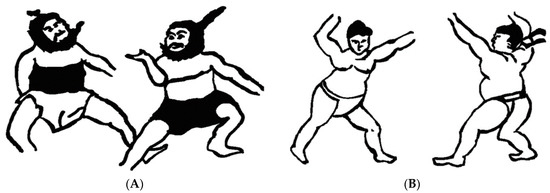 Although the Song Yuan Huaya depicting a wrestling scene gives an impression of Mongolian style at first sight, we still cannot determine it to be unmistakably of Mongolian origin unless we can differentiate it from other wrestling-themed seals, for example, those seals from the Han Dynasty carved with Jiaodi 角抵 or Jiaodi Xi 角抵戲 (Jiaodi drama), which is the name for traditional Central Chinese wrestling and wrestling drama, respectively. The analyses here will reveal that the Huaya with wrestling scene depiction in the Song Yuan Huaya is undoubtedly from Mongolian tradition.