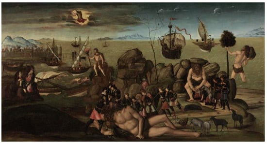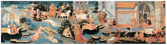 - Miziolek, Jerzy. 2006. The ‘Odyssey’ Cassone Panels from the Lanckoroński Collection: On the Origins of Depicting Homer’s Epic in the Art of the Italian Renaissance. Artibus et Historiae 27: 57–88. [Google Scholar] [CrossRef]