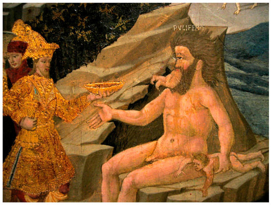 | 26 | See, for example, (Horkheimer and Adorno 2002, pp. 35–62); and (Vidal-Naquet 1991). My thanks to an anonymous reader for the following insightful observations: “[In this context] Ulysses’ dress makes him look like an allegory of a dowry: he is, after all, covered in what look to be coins … [also] the representation of cannibalism and of a nude (and, let’s be frank, erect) Polyphemus raises all sorts of questions about marriage and eroticism in the context of a cassone.” |