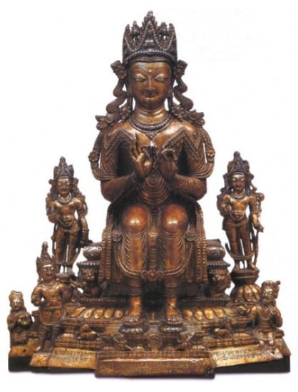 Vairocana Buddha. 14th century, Western Tibet https://himalayanbuddhistart.files.wordpress.com/2015/09/12th-c-tibet-ct-vairocana-c-a-cold-g-61-cm-albuquerque.jpg.