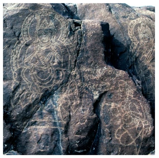 - Fussman, Gérard. 1994. Chilas-Thalpan et L’art du Tibet. In Antiquities of Northern Pakistan: Reports and Studies. Mainz: Verlag Philip von Zabern, vol. 3, pp. 57–72. [Google Scholar]