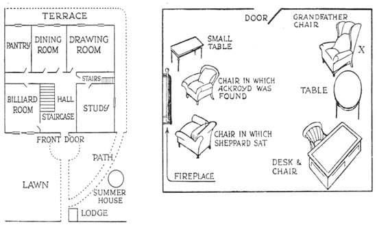 The use of maps and house plans became a very common practice during the Golden Age, when the detective genre came to be associated with the fair play rule. In this respect, Robert Barnard in A Talent to Deceive writes, “We are entering the age when plans of the house were an indispensable aid to the aspirant solver of detective stories” (Barnard 1990, p. 23). Readers were challenged to participate in the solving process at the side of great detectives and encouraged to read and interpret the maps rather than merely looking at them. Christie’s fiction and her recurrent use of maps activates the reader response. Readers, indeed, always go back to look at the map in order to locate the characters. Agatha Christie employs them again in 1926 in The Murder of Roger Ackroyd, the novel that consecrated her as the Golden Age’s greatest writer. Although diverging opinions exist as regards the classification of the novel as a masterpiece—back in 1926 it was condemned as a cheat by several members of the Detection Club (Knight 1980, p. 112)—readers from all over the world are still fascinated by its twisting and controversial ending.