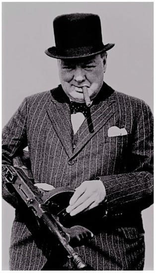 As such, Brecht’s designation of Churchill as an odiously duplicitous figure—not so unlike the equally Janus-faced Hitler of the first photo-epigram who preaches both a utopia of greatness and an unimaginable apocalypse—is very much in keeping with Brecht’s political values. Aesthetically, it is important to note that in this photo—which shows Churchill looking inadvertently the part of a gangster, during an inspection of the British army’s weaponry—verifies a reading of the poem’s hypothesis apropos his personality—that, despite claiming to defend humanity, he is, in truth, a murderous criminal—by providing a concrete, tangible referent to contradict the absurdity of the paradoxical personality of the poem’s speaker. Seen as Winston Churchill, the speaker of the poem is no longer an illusory figure of irony and the like, but one who—particularly in this photograph—returns the viewer’s gaze and undoes the lack of correspondence between the (poetic) word and the (political) world.