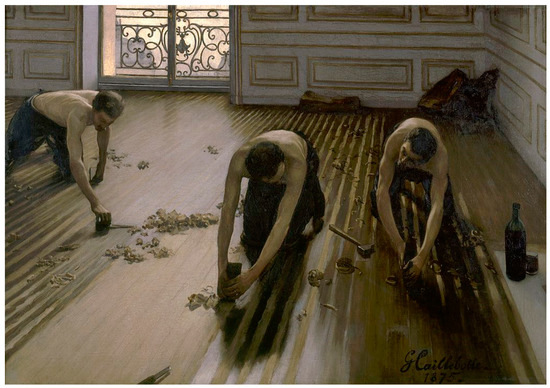 Germinal. Marrinan remarks that the workers in the painting are actually preparing the floor for what would become Caillebotte’s studio. Revealing the painting as an intersection between—and a reconciliation of—Naturalism’s more interiorized psychology and a more exteriorized, physical culture, Marrinan claims that the “thematic insight of