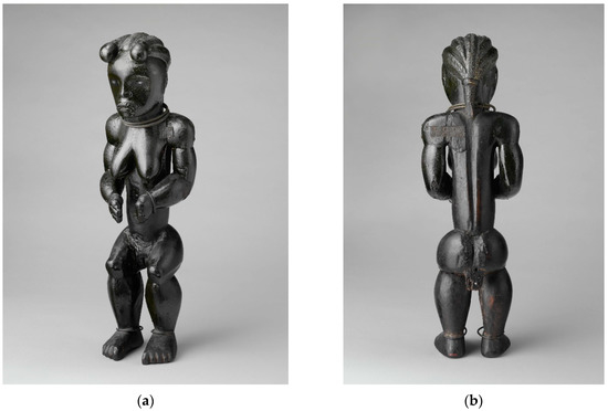 With the advent of modern art, a new shift occurred early 20th century. African artifacts became objects of esthetique transcendence. The wooden carved sculpture from a Fang (Oak group) reliquary ensemble (Gabon and Equatorial Guinea), which is today exhibited in the American Metropolitan Museum of Arts in New York City (MET), exemplified this transformation (Figure 6). In the museum’s accompanying text concerning the relic, one can read that Fang sculptures tremendously impressed European collectors in the 1920s (Metropolitan Museum of Art 2019). Artists praised their abstractions of the human form. Before its acquisition in 1961 by the director of the Museum for Primitive Art Robert Golwater, the figure of this reliquary ensemble was the property of French artist André Derain. It is most interesting to know that French painter Maurice de Vlaminck “showed an African sculpture to Derain and said that he found it to be ‘almost as beautiful as the Venus de Milo’. Derain responded that it was in fact ‘as beautiful as the Venus de Milo’. The two then showed it to Picasso, who reputedly deemed it ‘more beautiful than the Venus de Milo’” (Metropolitan Museum of Art 2019).