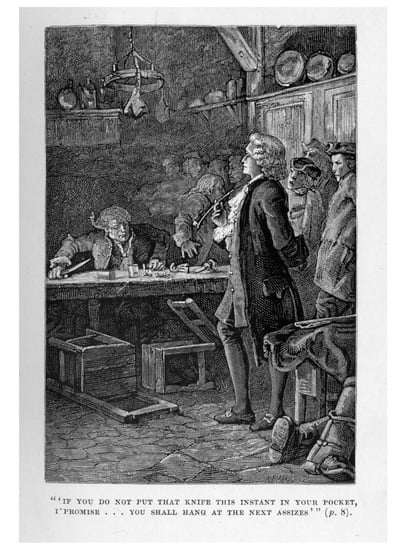 George Roux, “If you do not put that knife this instant in your pocket, I promise … you shall hang at the next assizes” (). From Richard J. Hill’s collection.
