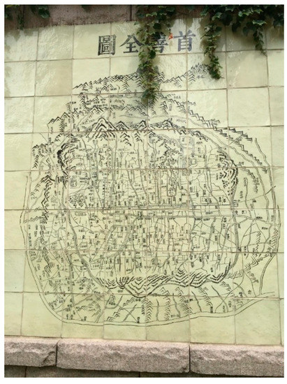 Figure 6) during the Joseon Dynasty, and the prominence of the Cheonggyecheon and its tributaries at its center, like a connective central core and its branches across the city, illustrating the natural foundations of the capital city’s geography and topography.