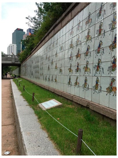Figure 3). The visual narrative of the Cheonggyecheon park is most expressive of the concept of history that frames the concept of the first section and accents areas throughout the rest of the park. The visual historical representations installed in the park reflect the project’s reflection of modern Seoul’s desire for historical roots, what David Harvey describes as “a search for more secure moorings and longer-lasting values in a shifting world” (