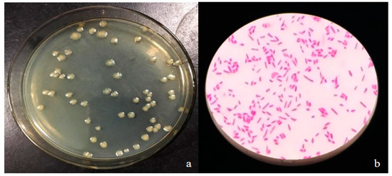 The CQ-4 strain was streaked in LB medium and cultured at 28 °C for 24 h. The colony produced yellow-green pigment, spherical, moist surface, smooth, translucent, and neat edges (Figure 2a). When observed under a microscope, the bacteria are slightly curved rod-shaped, with different lengths. They were identified as gram negative and they have a single polar flagellum, without spores and capsules (Figure 2b).