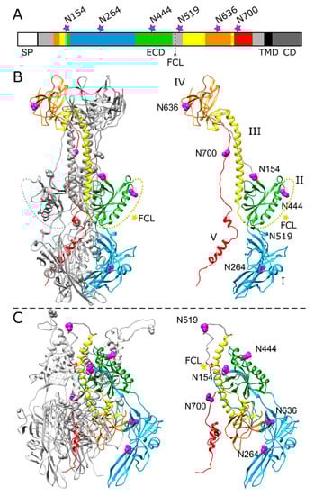- Walls, A.C.; Tortorici, M.A.; Frenz, B.; Snijder, J.; Li, W.; Rey, F.A.; DiMaio, F.; Bosch, B.J.; Veesler, D. Glycan Shield and Epitope Masking of a Coronavirus Spike Protein Observed by Cryo-Electron Microscopy. Nat. Struct. Mol. Biol. 2016, 23, 899–905. [Google Scholar] [CrossRef]
