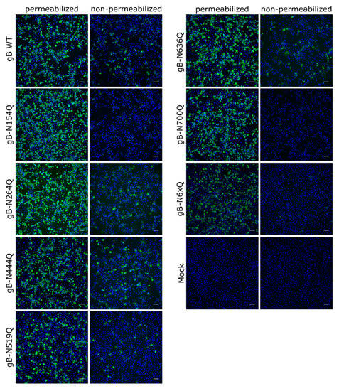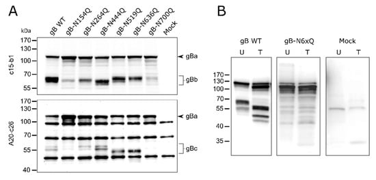 2.1. Effect of N-Glycosylation Site Mutations on gB Processing and Expression