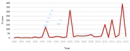Number of reported HFRS cases in Croatia (1986–2018).
