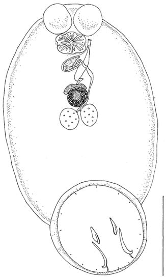 - Hargis, W.J., Jr. Monogenetic trematodes of Gulf of Mexico fishes. Part V. The superfamily Capsaloidea. Trans. Am. Microsc. Soc. 1955, 74, 203–225. [Google Scholar] [CrossRef]