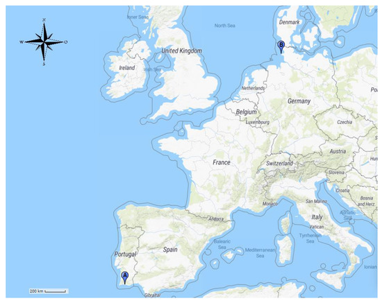 Wild pinniped samples included hooded and grey seals stranded on the Portuguese coast, between 2001 and 2014, and were obtained after the animals had been admitted to Porto d’Abrigo—the Rehabilitation Centre for Marine Species of Zoomarine Portugal. Samples from harbor seals captured in Lorenzensplate, in the Wadden Sea, Germany (Figure 1) were also analysed. The samples were collected as part of the annual health monitoring program of the harbor seal population in the Wadden Sea of Schleswig-Holstein, between September 2014 and October 2019. The program is carried out by the Institute for Terrestrial and Aquatic Wildlife Research, part of the University of Veterinary Medicine Hannover, Foundation, Germany. For sample collection, the animals had been randomly selected. All animals were weight, measured, microchipped for tracking purposes, thus ensuring that no animal was sampled more than once, and subsequently released.