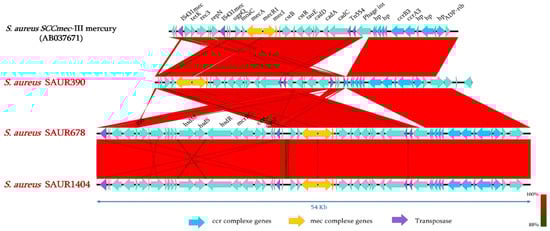 - Liu, J.; Chen, D.; Peters, B.M.; Li, L.; Li, B.; Xu, Z.; Shirliff, M.E. Staphylococcal chromosomal cassettes mec (SCCmec): A mobile genetic element in methicillin-resistant Staphylococcus aureus. Microb. Pathog. 2016, 101, 56–67. [Google Scholar] [CrossRef] [PubMed]