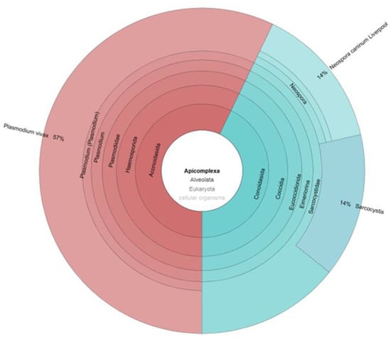 An example of gut parasitome kronos graph obtained by applying agnostic metagenomics pipelines and referred to Apicomplexa phylum.