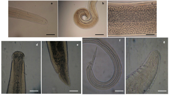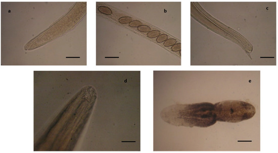 - Anderson, R.C.; Chabaud, A.G.; Willmont, S. Keys to the Nematode Parasites of Vertebrates; Anderson, R.C., Chabaud, A.G., Willmott, S., Eds.; Commonwealth Agricoltural Bureaux, Farnham Royal Bucks: London, UK, 1984. [Google Scholar]