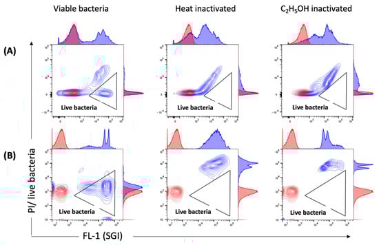 - Lehtinen, J.; Nuutila, J.; Lilius, E.-M. Green fluorescent protein–propidium iodide (GFP-PI) based assay for flow cytometric measurement of bacterial viability. Cytom. Part. A 2004, 60A, 165–172. [Google Scholar] [CrossRef] [PubMed]