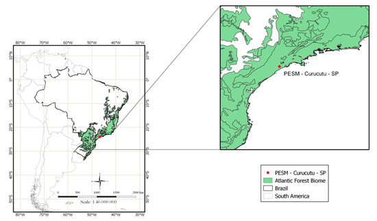 - Secretária de Infraestrutura e Meio Ambiente. Parque Estadual Serra do Mar. Núcleo Curucutu. Available online: https://guiadeareasprotegidas.sp.gov.br/ap/parque-estadual-serra-do-mar-nucleo-curucutu/ (accessed on 20 November 2020).