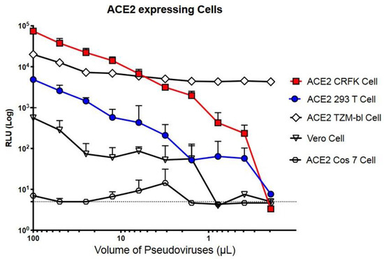 2.1. Measuring LpVspike(+) Infectivity in Various ACE2-Expressing Cell Types
