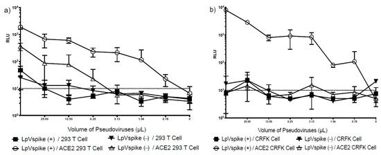 2.2. The Comparison of LpVspike(+) Infectivity in HEK293T and CRFK Cell Lines with/without ACE2 Transfection