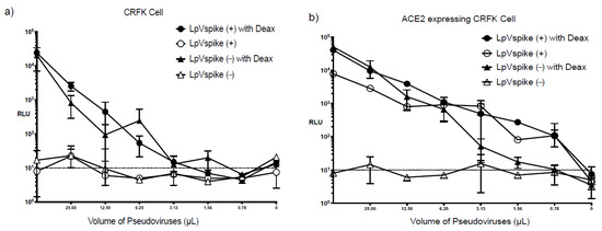 2.5. Stability of ACE2 Expression in CRFK Cells and LpVspike(+)