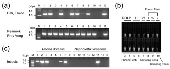 PCR-based ROLP detection from field-collected insects Racilia dorsalis and Nephotettix virescens in Cambodian paddies.