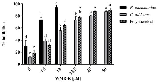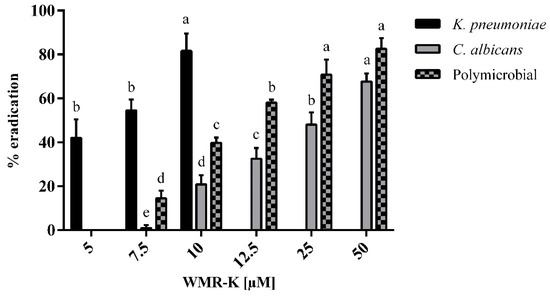 4.7. Inhibition and Eradication of WMR-K on Mono- and Polymicrobial Biofilms
