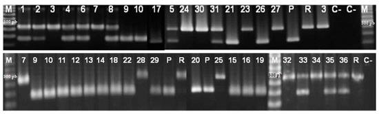 4.3.2. Conventional Multiplex PCR with Specific Primers