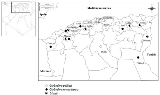 - EPPO Global Database. Survey on Globodera pallida and G. rostochiensis in Algeria. EPPO Reporting Service no. 09. 2019. Num. article: 2019/186. 2019. Available online: https://gd.eppo.int/reporting/article-6616 (accessed on 13 October 2020).