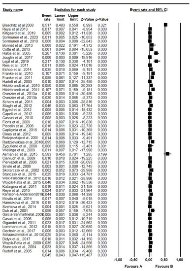 | Denmark | 1 | 1013 | 5 | 0.50 (0.20–1.20) | − | − | − |