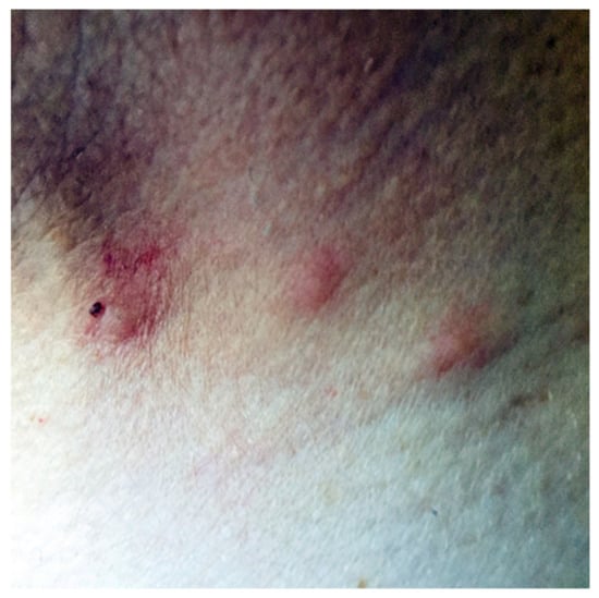 26. Santana, A.P.; Cardoso, A.E.C.; Passos, R.T.; Ferreira, Í.S.C. Case for diagnosis. Erythematous and pruritic papules on forearms. Bras. Derm. 2020, 95, 250–251. [Google Scholar] [CrossRef]