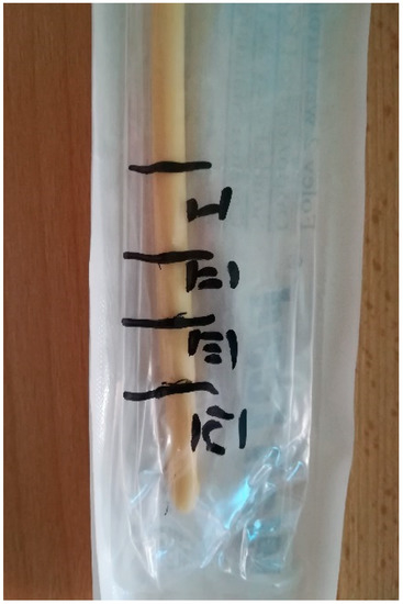 The ET’s distal part (approximately 3–5 cm) will be collected according to recommended techniques [45,47]. Subsequently, the sample will be divided with a sterile scissors into 4 pieces, 2 of which will be used for microbiological processing and 2 for gene sequencing. For each type of processing, one part includes a portion of the cuff segment (Figure 1).