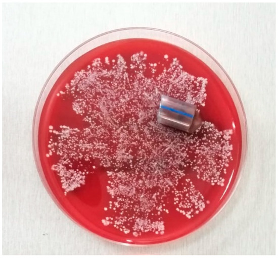 Since there is no standardized method used for the detection and identification of UC and ET biofilms, the investigators will utilize adapted techniques described in previous publications. ET and UC samples will be processed by the roll-plate technique and the rolled fragments will be placed on the medium surface for 48–72 h incubation at 37 °C (Figure 3 and Figure 4) [45,47,48,51].