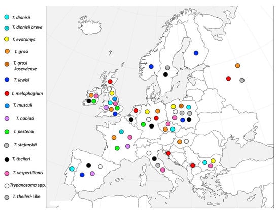 Along with these well-known and studied species, other Trypanosoma spp. can infect mammals, and some of them are also diffused in Europe. The aim of this brief review was to gather reports of findings of these neglected species in Europe in order to raise awareness on the presence if these flagellates during epidemiological and diagnostic studies on trypanosomatid parasites on the European territory (Figure 1).