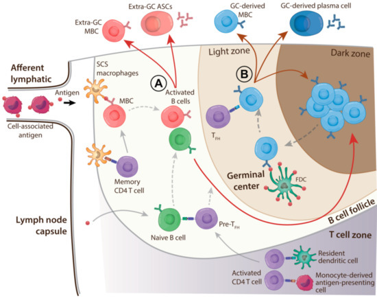 - Cyster, J.G.; Allen, C.D.C. B Cell Responses: Cell Interaction Dynamics and Decisions. Cell 2019, 177, 524–540. [Google Scholar] [CrossRef]