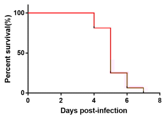 Daily survival percentages of ducklings infected with 5 × 103.5 TCID50 of the duck enteritis virus strain with the SD suspension.