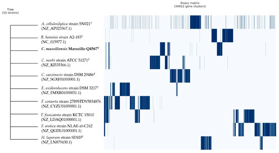 - Page, A.J.; Cummins, C.A.; Hunt, M.; Wong, V.K.; Reuter, S.; Holden, M.T.; Fookes, M.; Falush, D.; Keane, J.A.; Parkhill, J. Roary: Rapid large-scale prokaryote pan genome analysis. Bioinformatics 2015, 31, 3691–3693. [Google Scholar] [CrossRef]