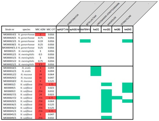 - Furuya, R.; Tanaka, M.; Onoye, Y.; Kanayama, A.; Saika, T.; Iyoda, T.; Tatewaki, M.; Matsuzaki, K.; Kobayashi, I. Antimicrobial resistance in clinical isolates of Neisseria subflava from the oral cavities of a Japanese population. J. Infect. Chemother. 2007, 13, 302–304. [Google Scholar] [CrossRef]