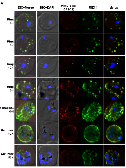2.2. PfMC-2TM Is Expressed by 4 h Post Merozoite Invasion