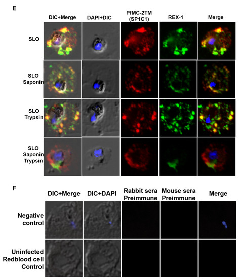 2.5. PfMC-2TM in the MC Is Accessible to Protease in the Erythrocyte Cytoplasm