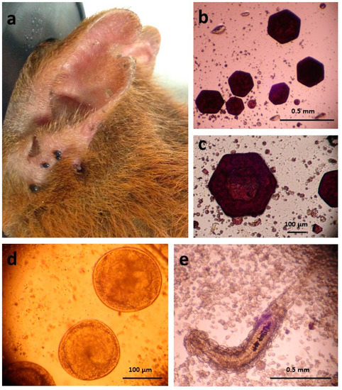 - Romeo, C.; Pisanu, B.; Ferrari, N.; Basset, F.; Tillon, L.; Wauters, L.A.; Martinoli, A.; Saino, N.; Chapuis, J.-L. Macroparasite community of the Eurasian red squirrel (Sciurus vulgaris): Poor species richness and diversity. Parasitol. Res. 2013, 112, 3527–3536. [Google Scholar] [CrossRef] [PubMed]